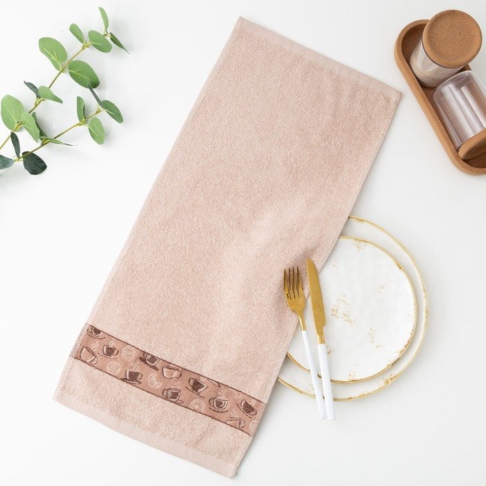 Полотенце 30*60 см, Чашки, бежевый, 340 гр/м, махра, хл