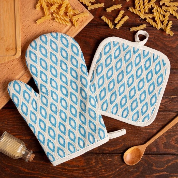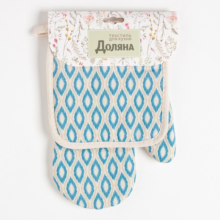 Кухонный набор (2 предмета) Доляна «Ромбы», прихватка 17×17 см, варежка 26×16 см, 100% п/э