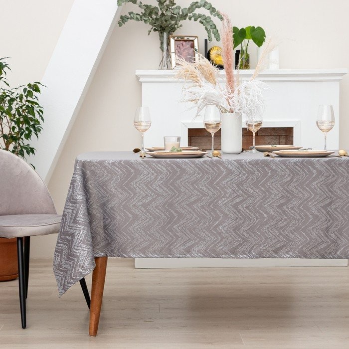 Скатерть Этель «Lines» цв.серый, 142*180 +/-3 см, 115 ±10 гр,100% п/э