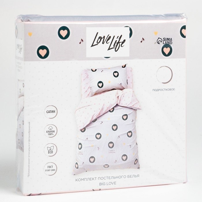 Постельное белье 1.5 сп «LoveLife» Big love, 143×215 см,150×214 см,70×70 см-1 шт. сатин