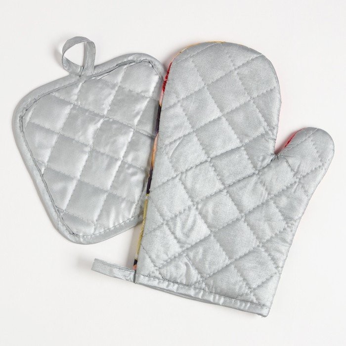 Кухонный набор (2 предмета) Доляна «Цитрусовые», прихватка 17×17 см, варежка 26×16 см, 100% п/э