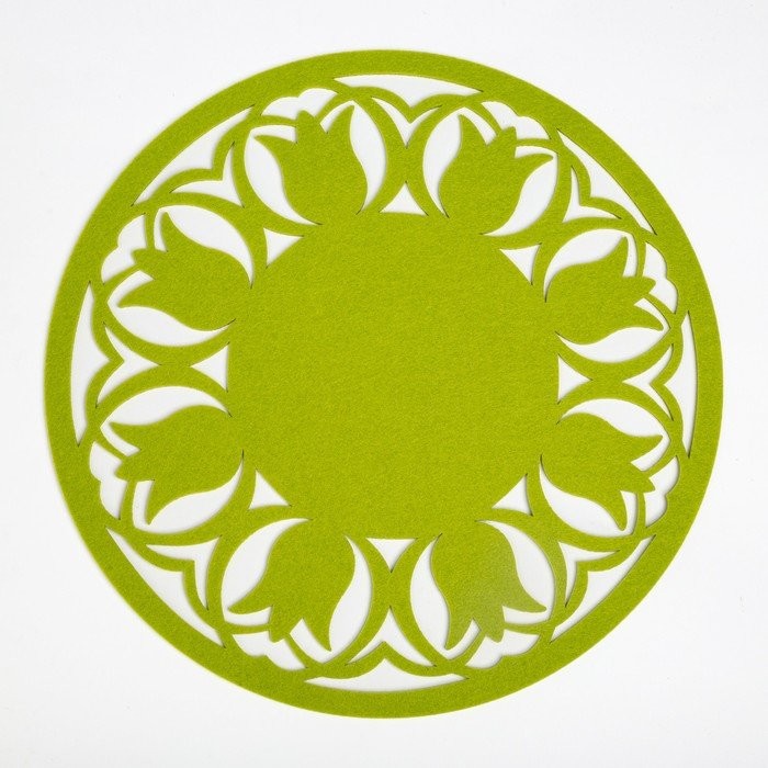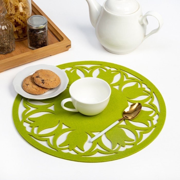 Салфетка декоративная Доляна"Тюльпаны» цвет зеленый, d 30 см, 100% п/э, фетр