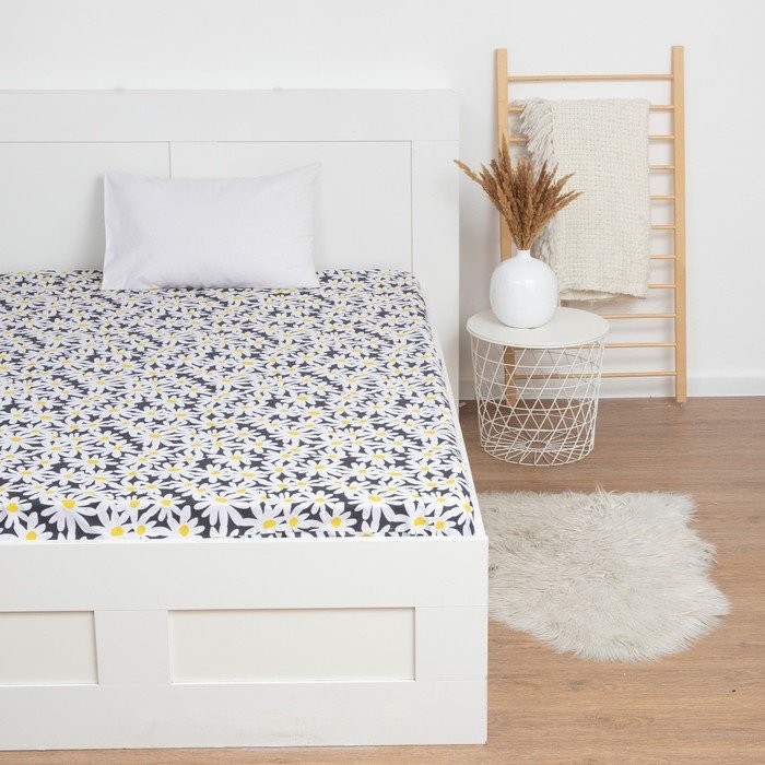 Простыня на резинке LoveLife 140*200*25см, «Ромашки», 100% хлопок, сатин, 125г/м²