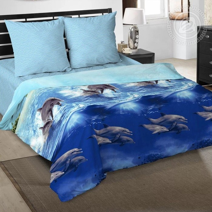 Постельное бельё 1,5сп «Голубая лагуна» 143х215см, 150х220см, 70х70см 2шт