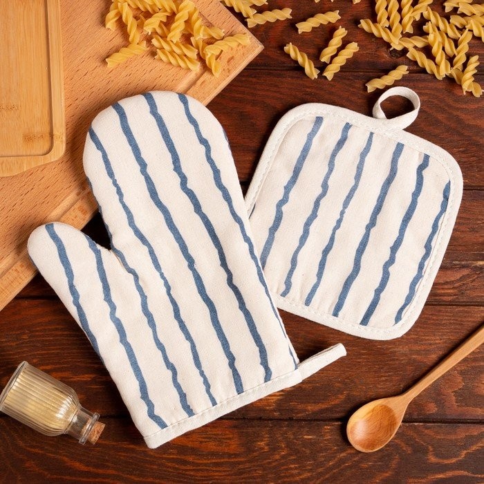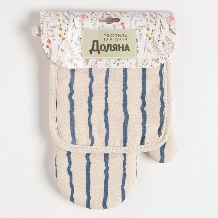 Кухонный набор (2 предмета) Доляна «Линии», прихватка 17×17 см, варежка 26×16 см, 100% п/э