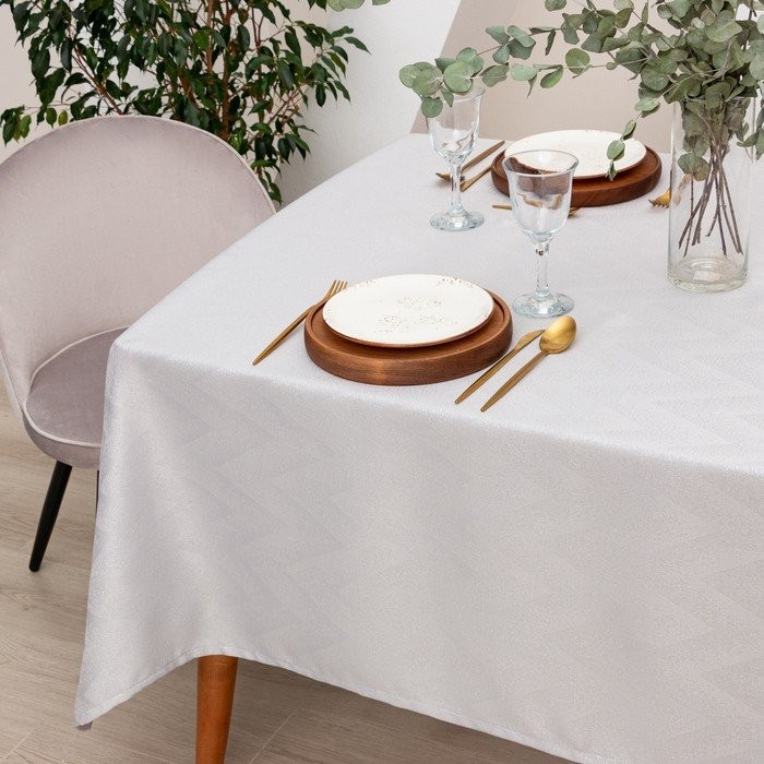 Скатерть Этель «Линии» цв.серебро, 142*180 +/-3 см, 115 ±10 гр,100% п/э