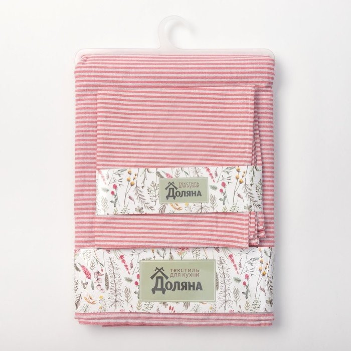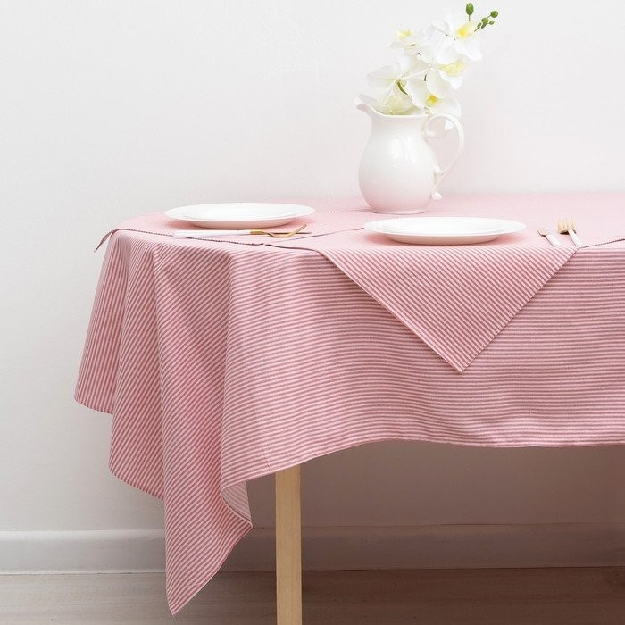 Набор Доляна скатерть 145х200см/салфетки 40х40см 4шт, Розовые полоски, 100%пэ,рогожка 200 гр