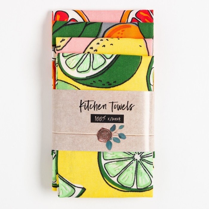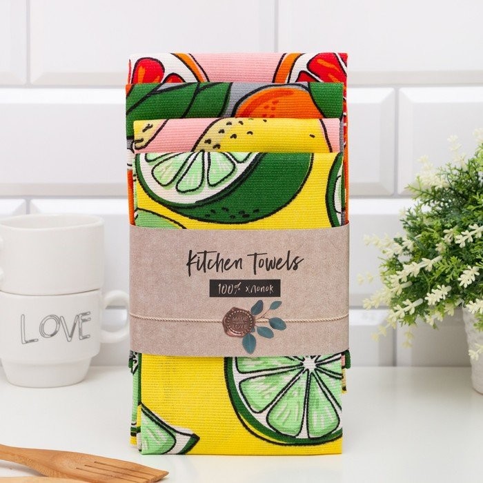 Набор кухонных полотенец Доляна Citrus mix 35х60см-4шт, 100% хл