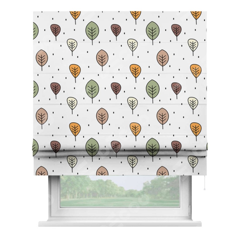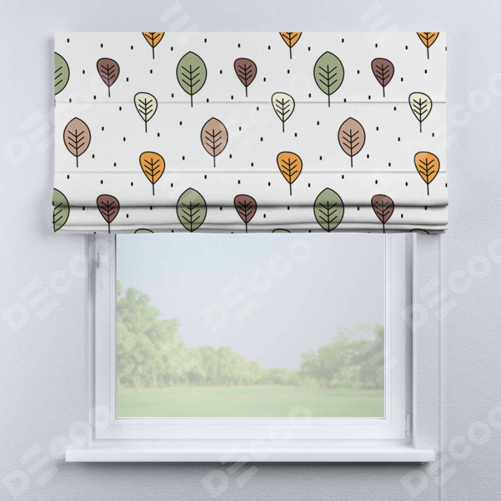 Римская штора производителя «Cortin», используется для проёма, пошита из ткани блэкаут с нанесением сублимационной печати «Простые деревья». Имеет универсальный механизм и подходит для монтажа: на потолок, на стену и в нишу.
