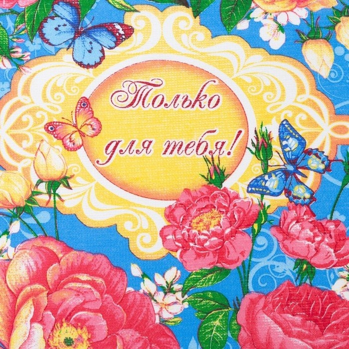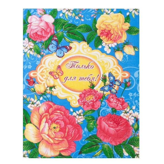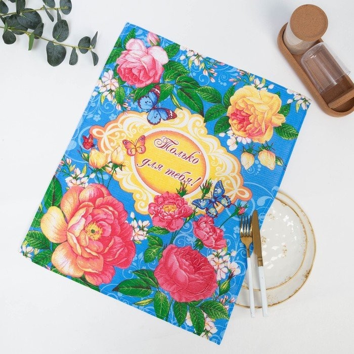 Полотенце 45×60 см, Английская роза, голубой, вафля, 160 гр/м2, хлопок 100%