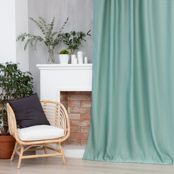 Штора портьерная Этель «Фактура"цв.светло-зеленый,на шторн.ленте 250*265 см,100% п/э