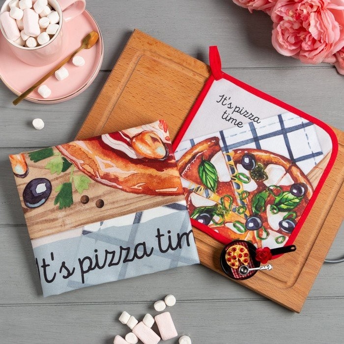 Набор подарочный «Время пиццы» полотенце 40х73см, прихватка 19х19см, магнит 11х7см