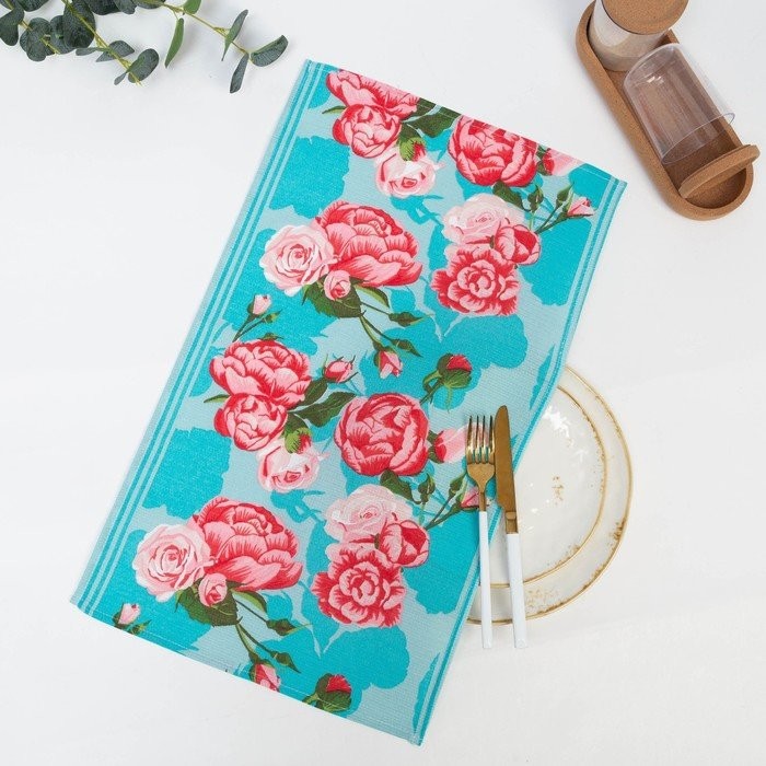 Полотенце 35×60 см, Пятна, бирюза, вафля, 160 гр/м2, хлопок 100%