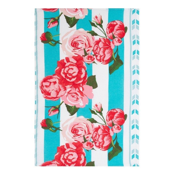 Полотенце в коробке 35×60 см, Полоса, бирюза, вафля, 160 гр/м2, хлопок 100%