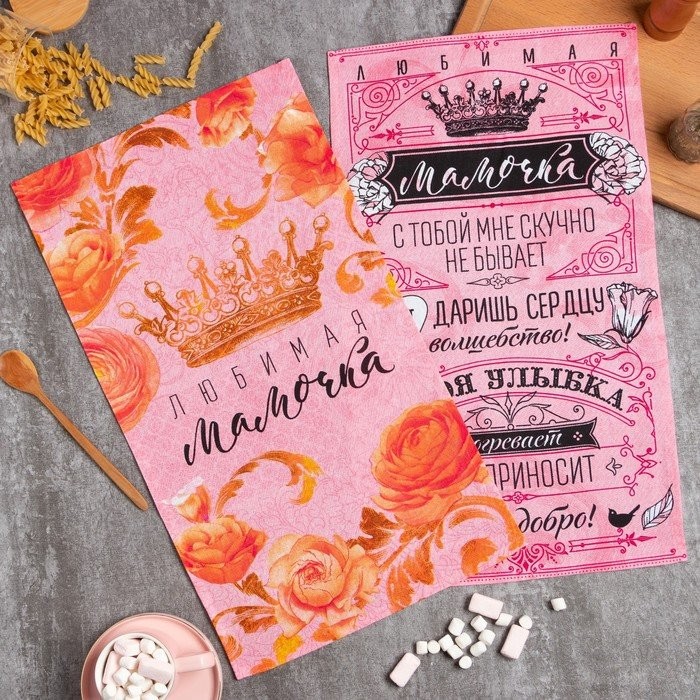 Набор кухонных полотенец Доляна «Мамочка» 35×60 см — 2шт, 100% хл