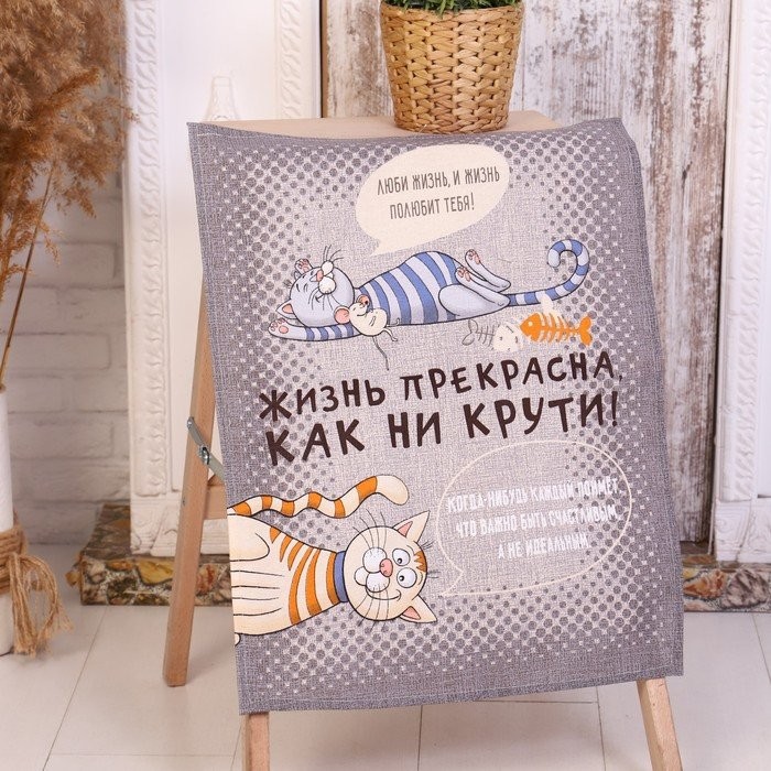 Полотенце 45×60 см, Кошачьи тайны (рис.1), рогожка, 170 гр/м2, хлопок 100%