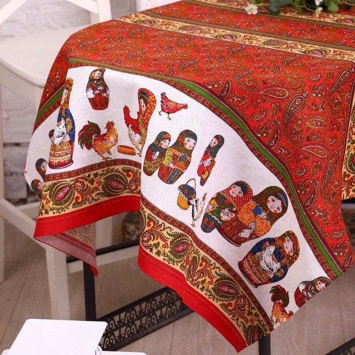 Скатерть 110×150 см «Матрешка», красный, рогожка, хл 100%