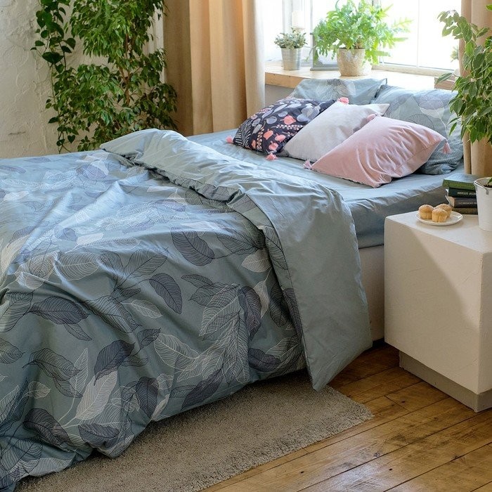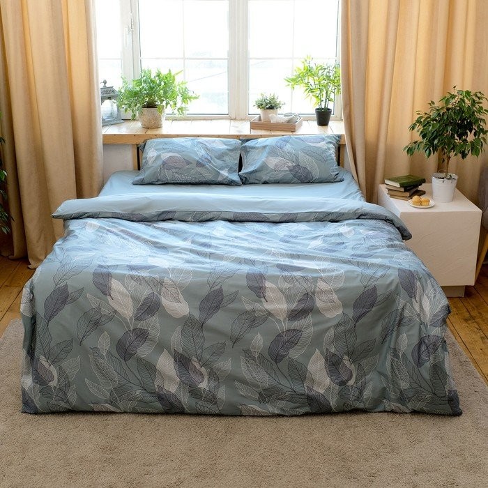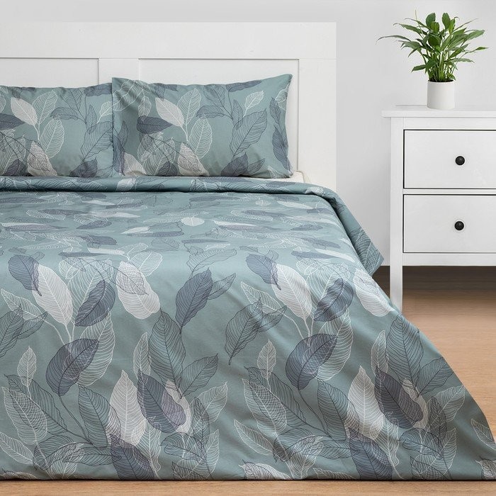 Постельное бельё Этель 2 сп Mint leaves, пододеяльник 175×215 см, наволочки 50×70 см 2 шт, 100% хлопок