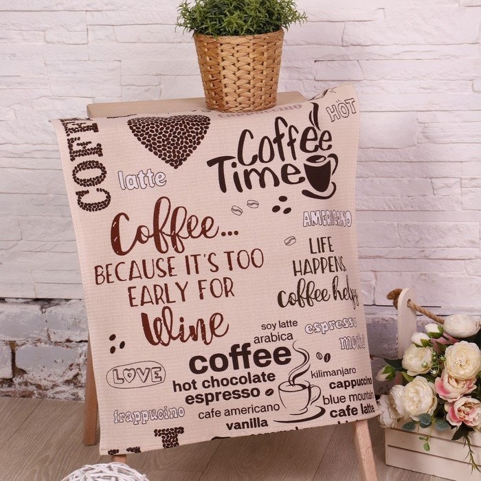 Полотенце 50×60 см, Кофейная любовь, вафля, 170 гр/м2, хлопок 100%