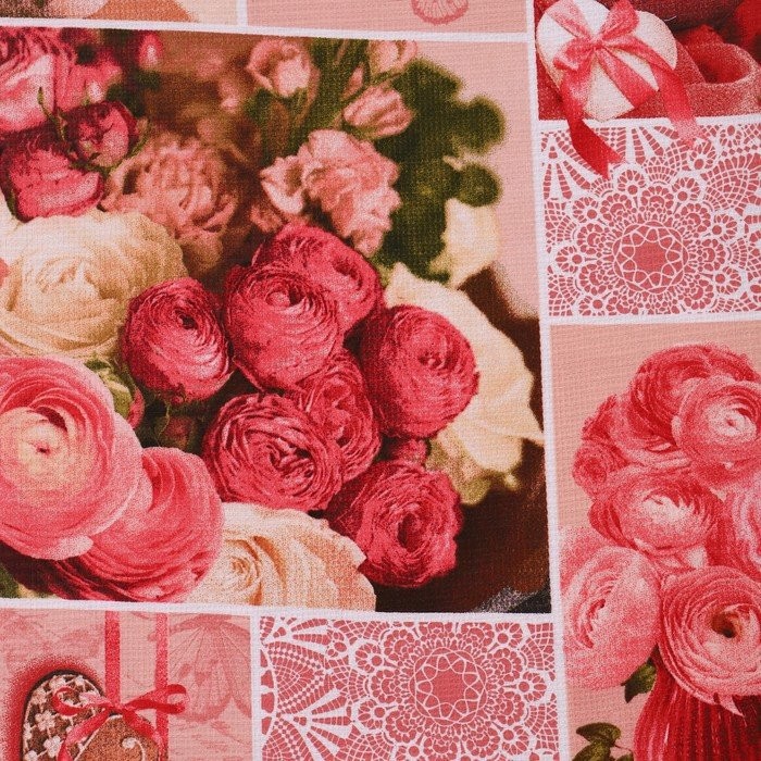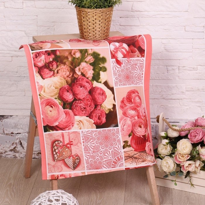Полотенце 50×60 см, Розовый пэчворк, вафля, 170 гр/м2, хлопок 100%