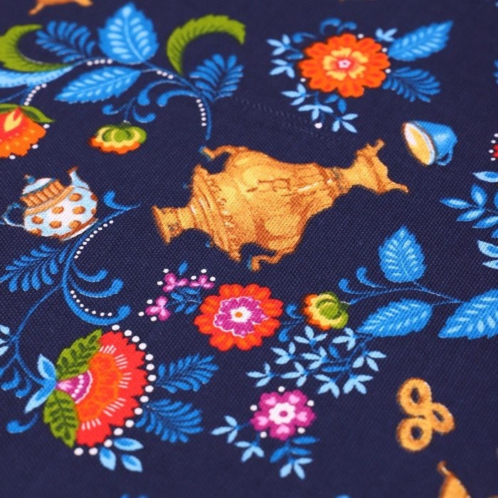 Скатерть 150×150 см Самовары, синий, хл 100%, рогожка
