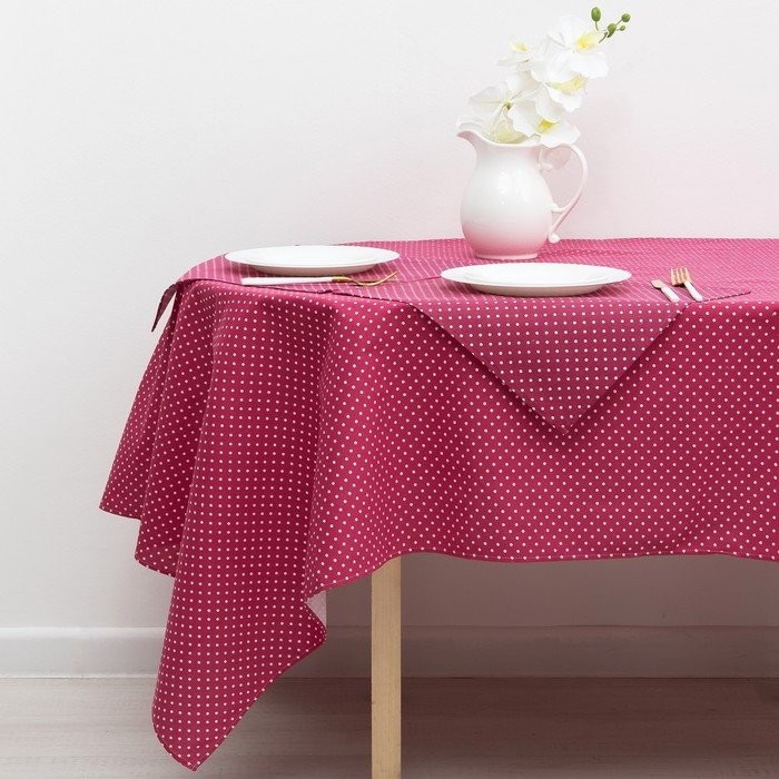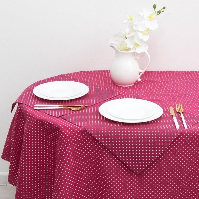 Набор Доляна скатерть 145х200см/салфетки 40х40см 4шт, Горох цв.красный, 100%пэ