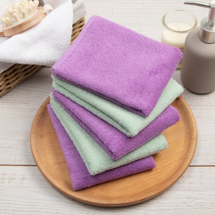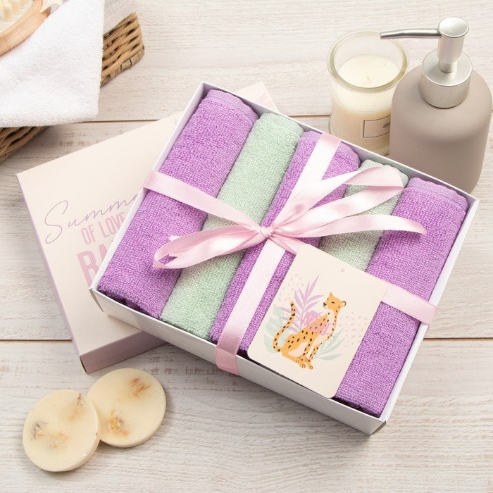 Набор махровых полотенец Этель Summer 30×30 см -5шт, 100% хлопок 340 гр/м2