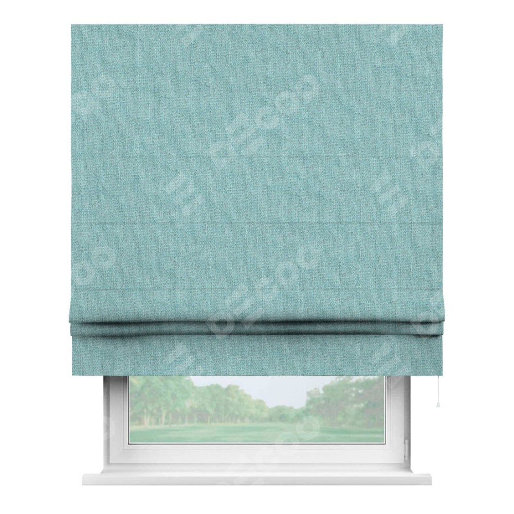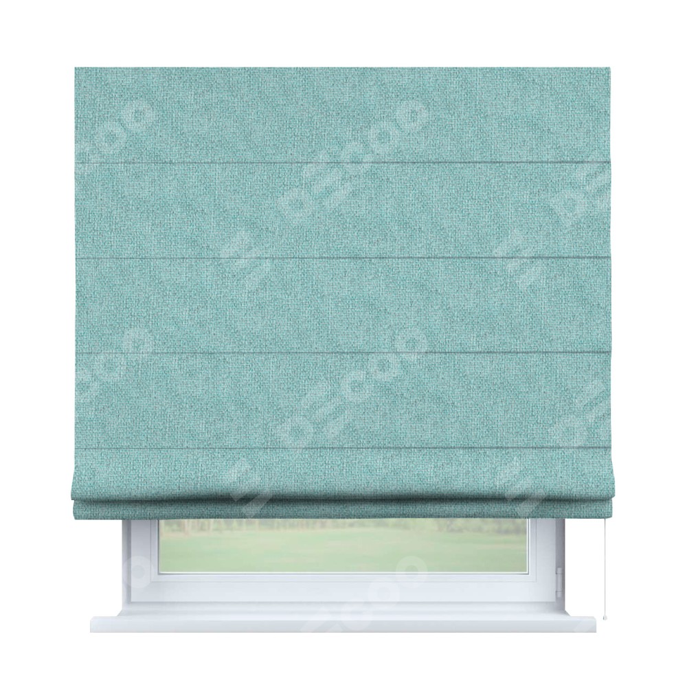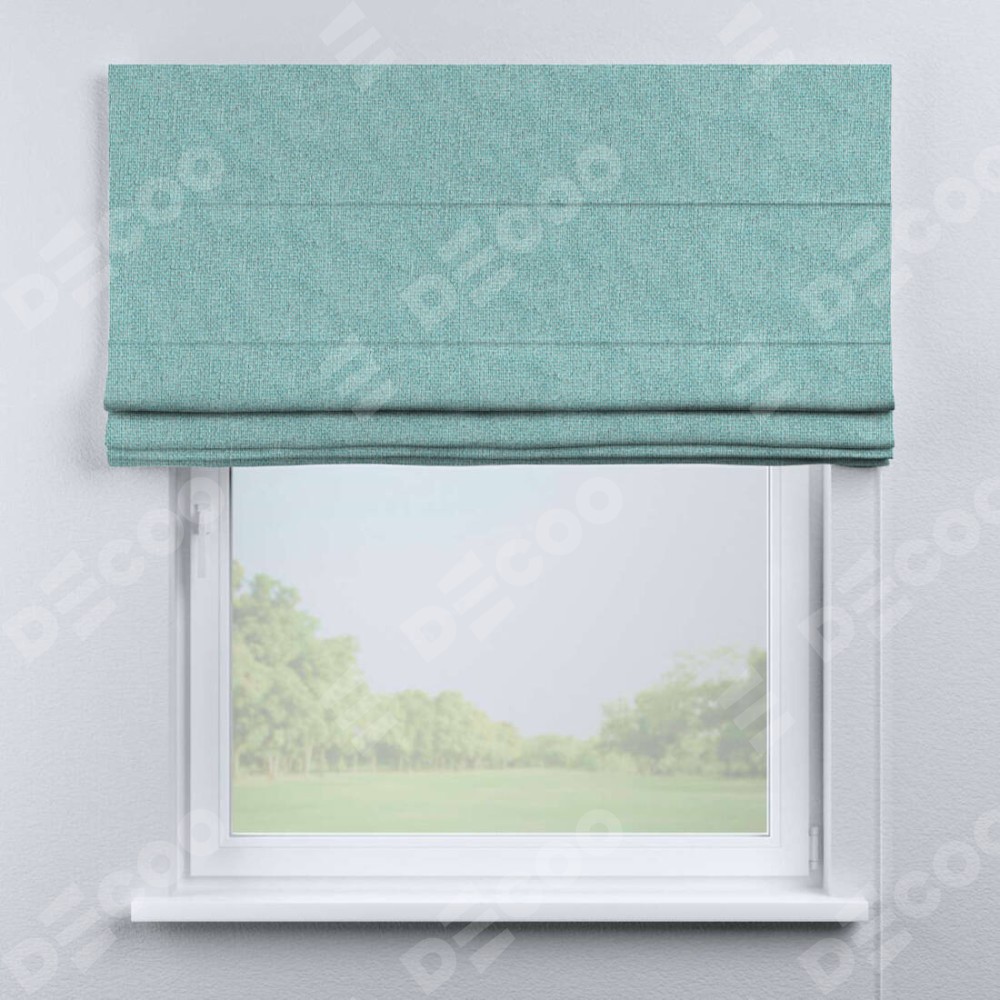 Римская штора производителя «Cortin», используется для проёма, пошита из ткани лён димаут бирюзовый, артикул ткани 23. Имеет универсальный механизм и подходит для монтажа: на потолок, на стену и в нишу.