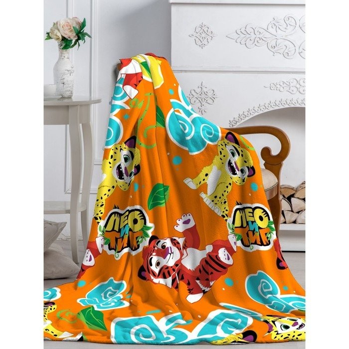 Плед Павлинка Лео и Тиг оранжевый 100х150см аэрософт, 190г/м пэ100%