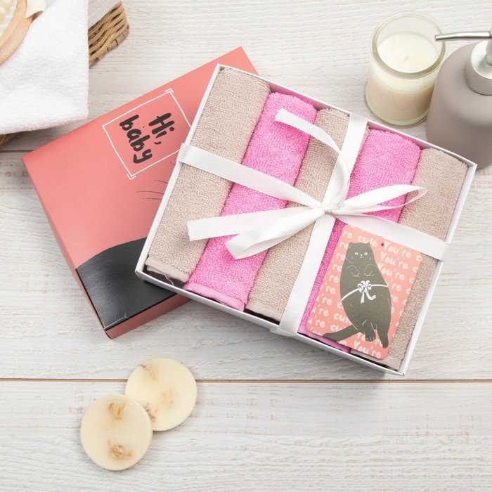 Набор махровых полотенец Этель Hi, baby 30×30 см -5шт, 100% хлопок 340 гр/м2