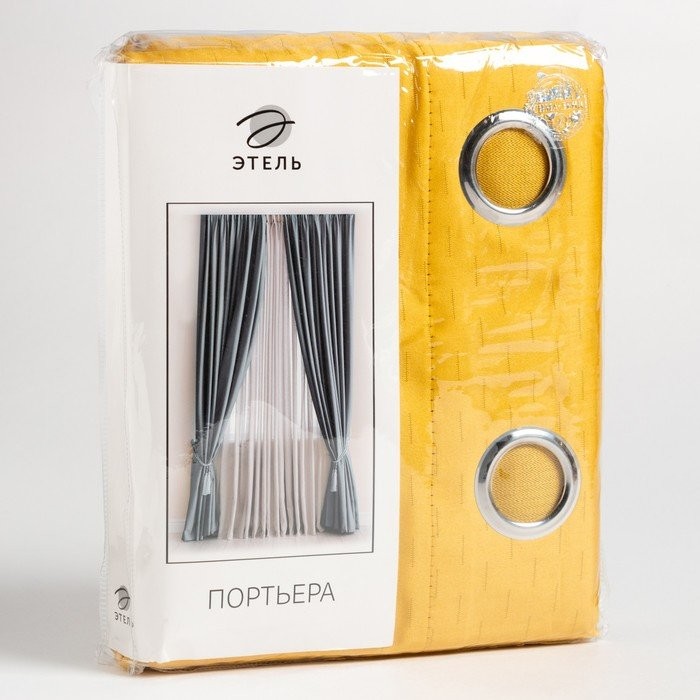 Штора портьерная Этель «Штрихи» цв.желтый,на люверсах 250*265 см, 100% п/э