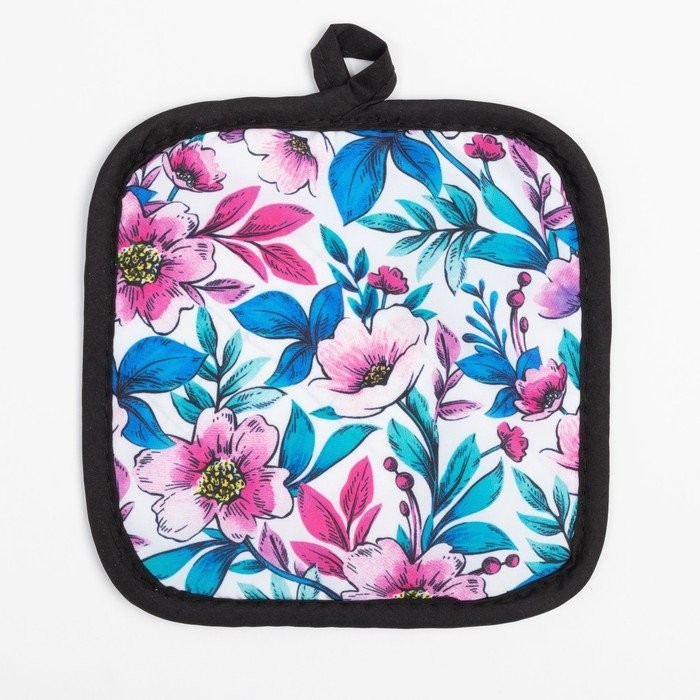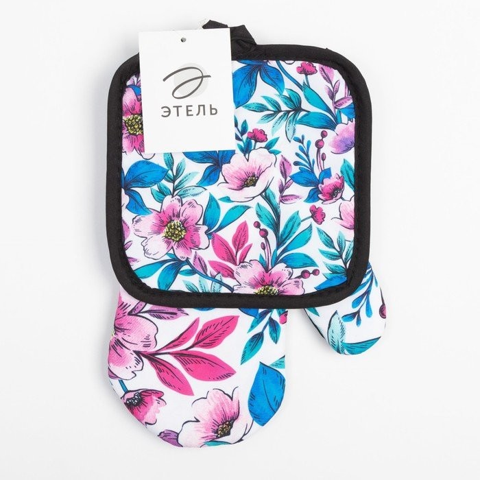 Кухонный набор (2 предмета) Этель «Цветы», прихватка 17×17 см, варежка 26×16 см, 100% п/э