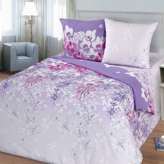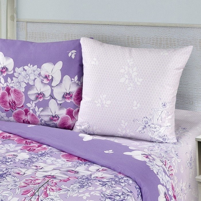 Постельное бельё 1,5сп Миланика Орхидеи 143х215см, 145х215см, 70х70см 2 шт, бязь 125г/м, хлопок 100%