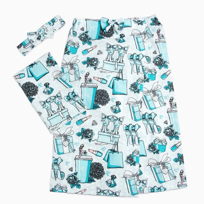Набор для сауны Этель «Mint mood» парео с бантиком+полотенце 80×150 см+повязка,100% хл