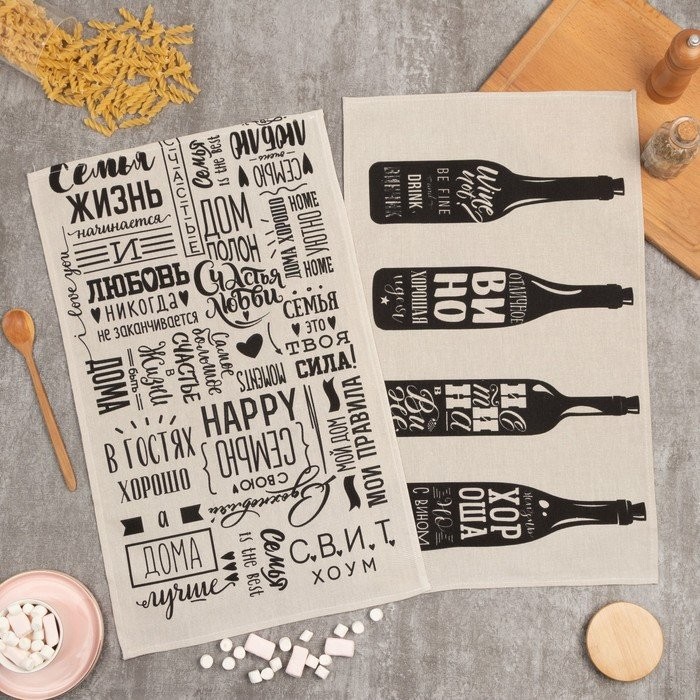 Набор кухонных полотенец Доляна Wine 35х60см-2шт, 100% хл
