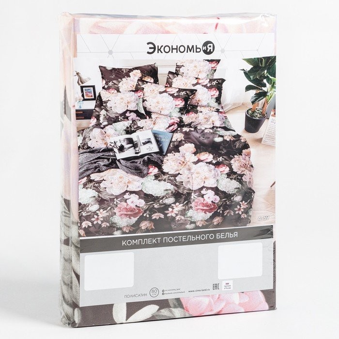 Постельное бельё Экономь и Я Евро «Пионы» 147х210см,150х215см,70х70см-2 шт