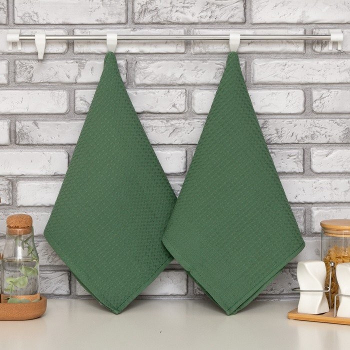 Набор кухонных полотенец Доляна, цвет хаки, 35х60см-2шт, 100% хл, вафля, 220 гр/м2