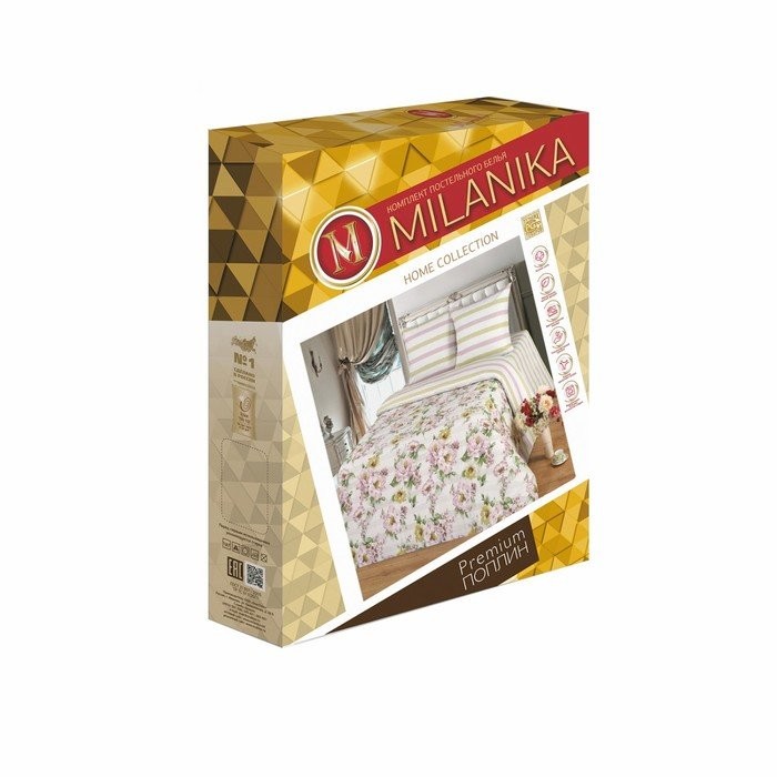 Постельное бельё евро Миланика Вивьен 200х217см, 217×240 см, 70х70см 2 шт, поплин 117г/м, хлопок 100%