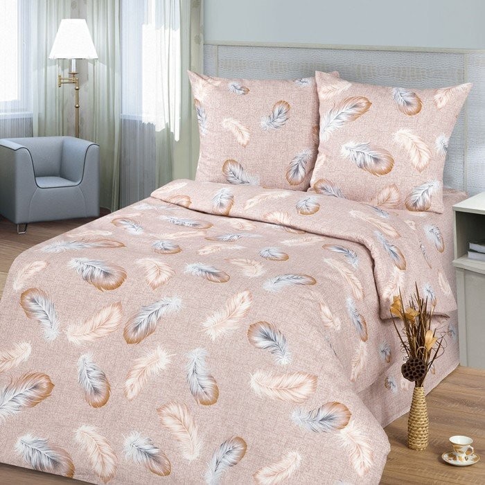 Постельное бельё 1,5сп Миланика Перья 143х215см, 145х215см, 70х70см 2 шт, бязь 125г/м, хлопок 100%