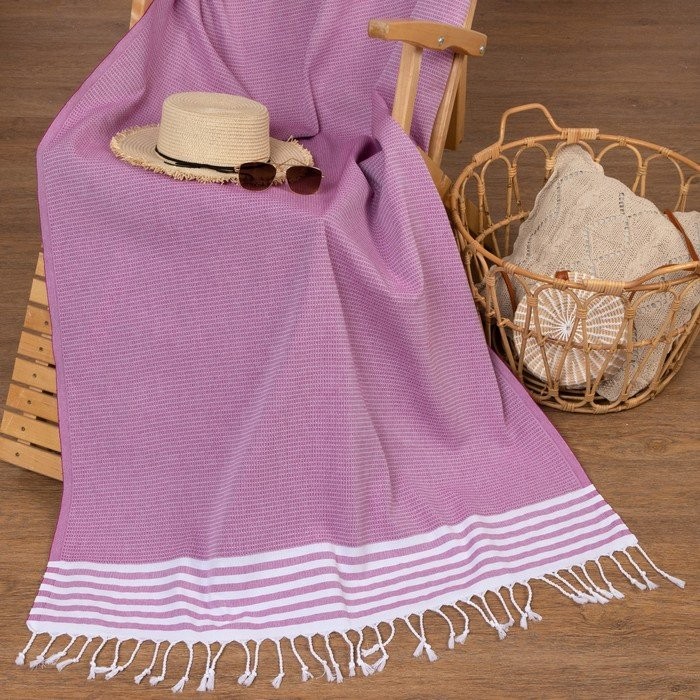 Пештемаль для пляжа, бани, сауны Waffle 100×180 см, розовый