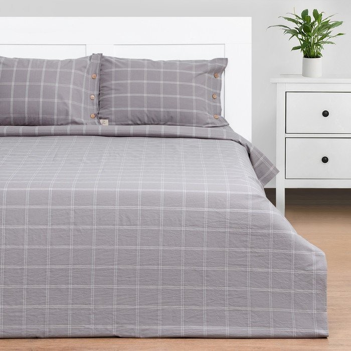 Постельное бельё Этель 1.5 сп «Клетка» 155×210 см,160×240 см,50×70−2шт, 100% жатый хлопок, 140гр/м2