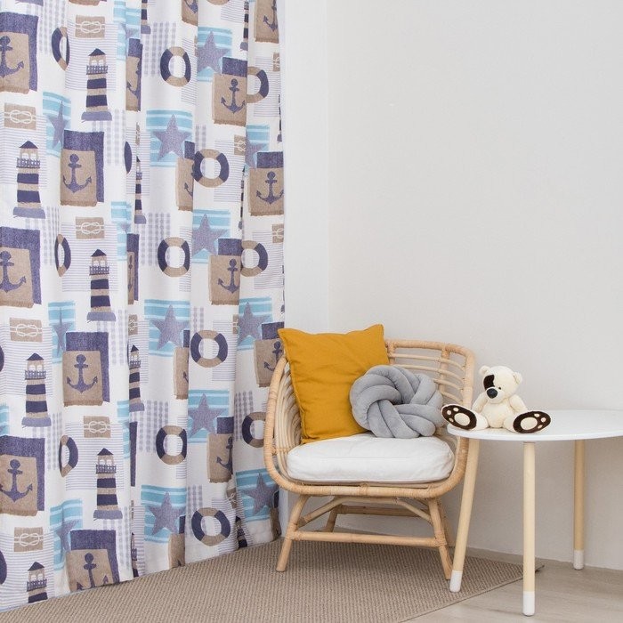 Портьера Этель «Морской стиль» без держателя, цвет синий, 170×260 см, блэкаут, 100% полиэстер
