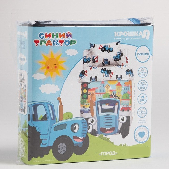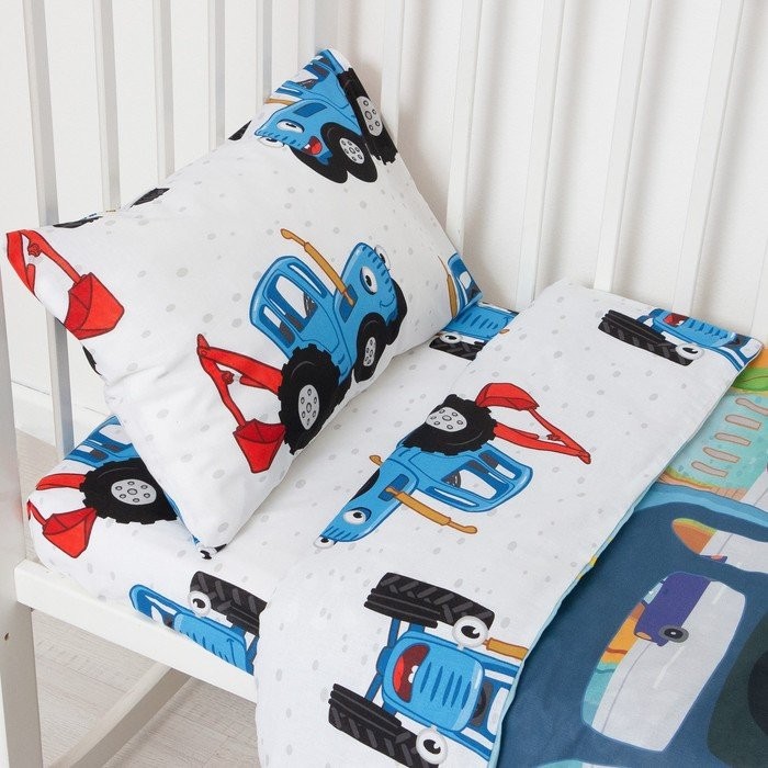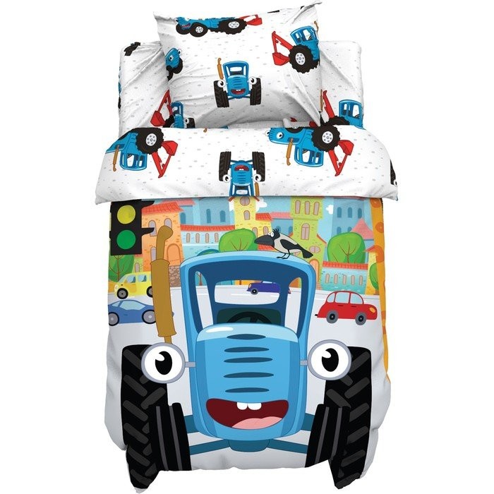Постельное бельё Синий трактор «Город» 112×147 см, 60×120+20 см, 40×60 см, 100% хлопок, поплин 125г/м2