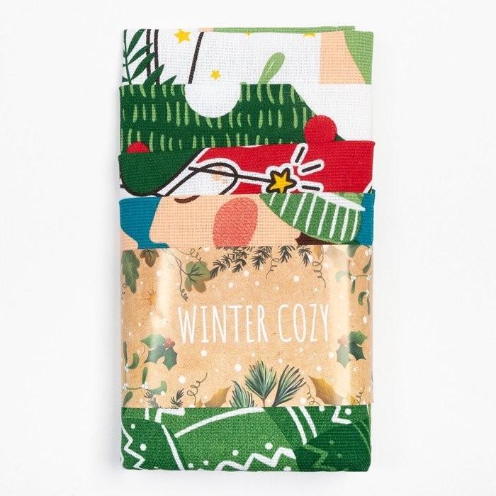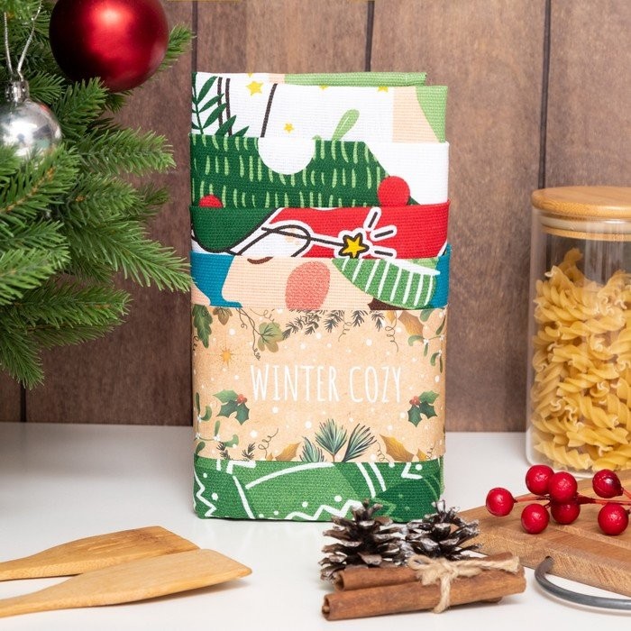 Набор кухонных полотенец Доляна «Время теплых объятий», 35×60 см-4шт., 100% хлопок, 160 г/м2