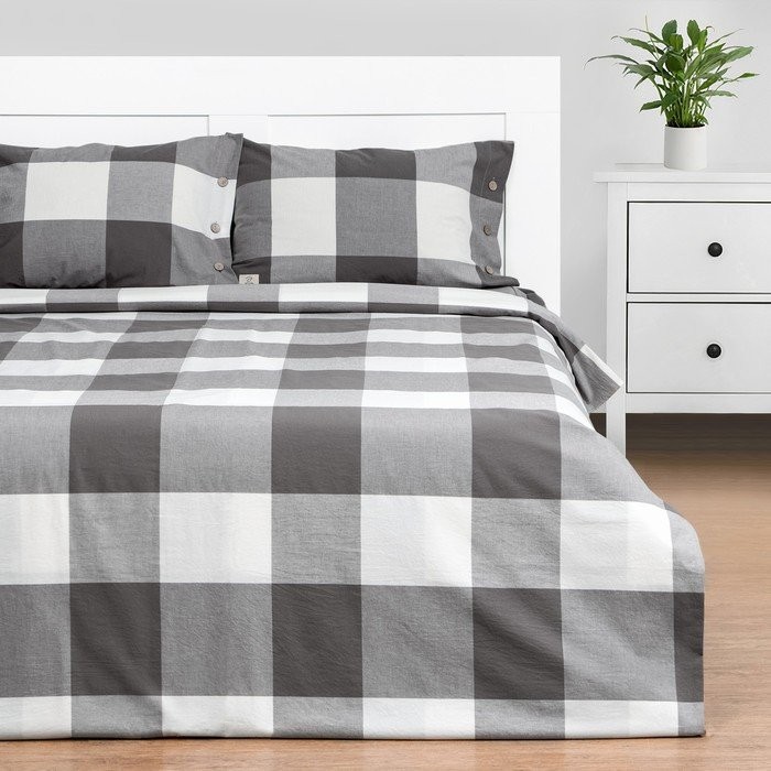Постельное бельё Этель 1.5 сп «Серая клетка» 155×210 см,160×240 см, 50×70−2шт, 100% жатый хлопок,140гр/м2