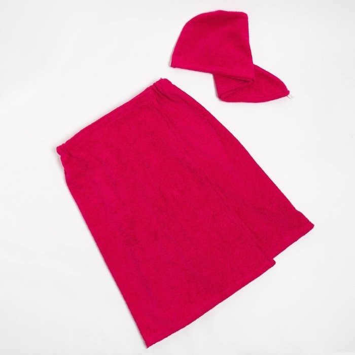 Набор для сауны Экономь и Я: полотенце-парео 68*150см + чалма, цв.ярко-розовый,100%хл,320 г/м2