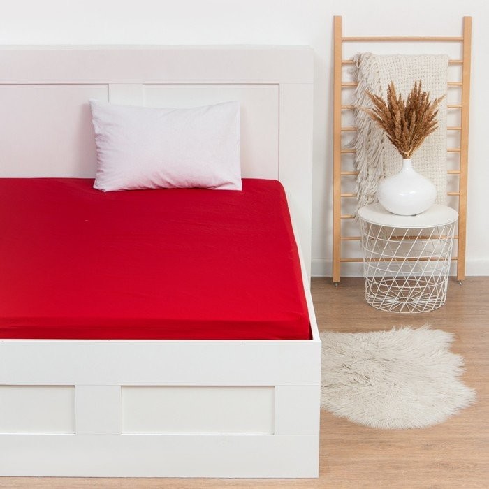 Простыня на резинке Этель, 160*200 + 25 см, красный, 100% хлопок, бязь