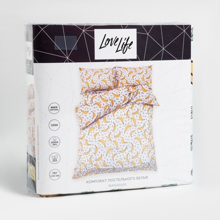 Постельное бельё LoveLife евро Bananas 200×217 см, 225×240 см, 50х70см-2шт, 100%хлопок, сатин, 125г/м²