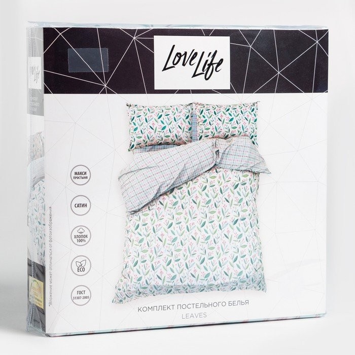 Постельное бельё LoveLife евро Leaves 200×217 см, 225×240 см, 50х70см-2шт, 100%хлопок, сатин, 125г/м²