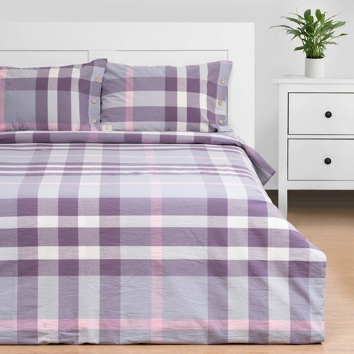 Постельное бельё Этель Евро «Клетка» 200×220 см, 220×240 см, 50×70−2шт, 100% жатый хлопок, 140гр/м2